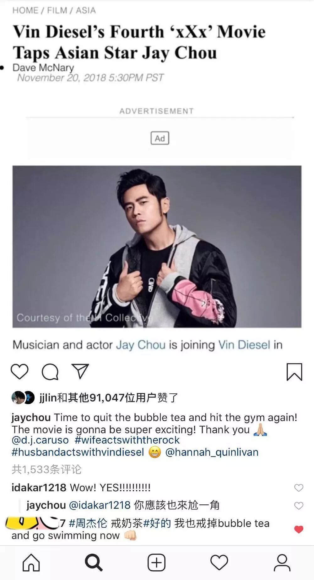 然后,周杰伦还专门发了ins,表示自己要戒奶茶了!!!