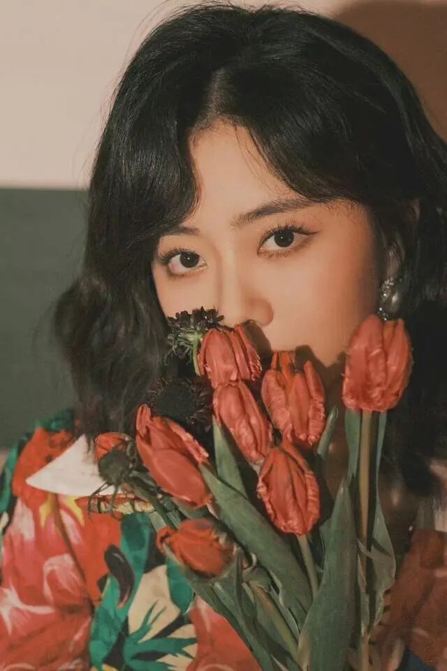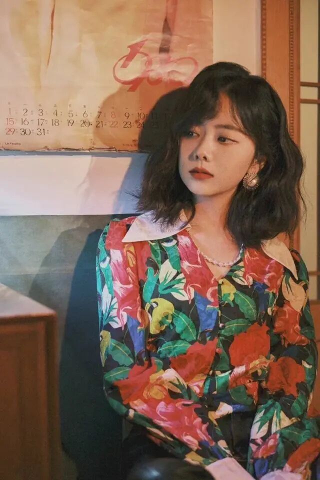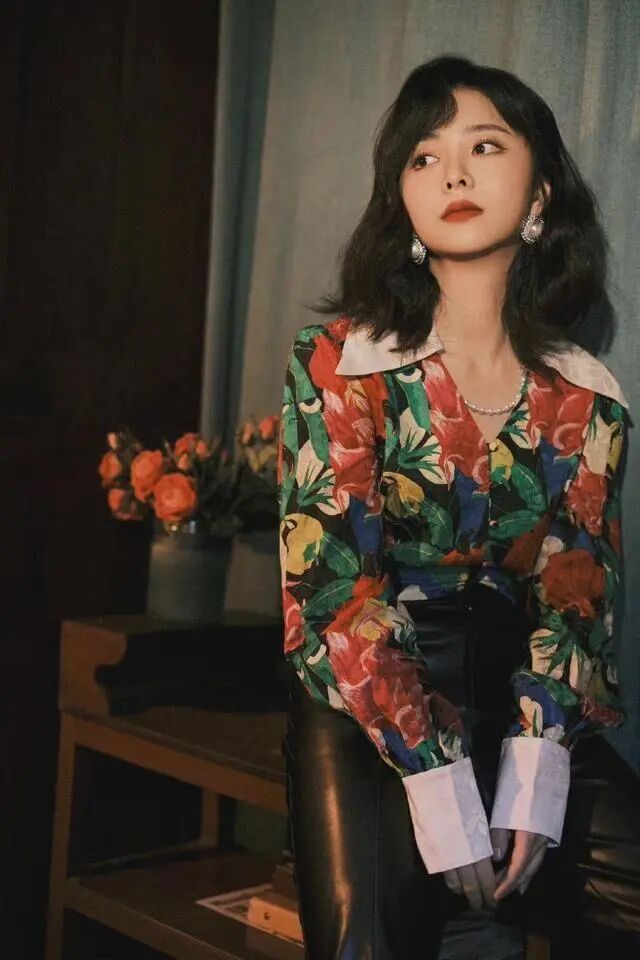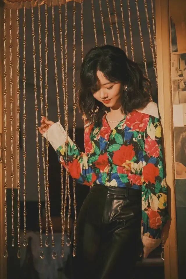 印花衬衫的配色,也会影响到造型的气质。比如浅淡清新的印花,就比较适合用来减龄显嫩。而谭松韵选的这类红色系的自然风印花,则带着更明显的浪漫风情,同时还不会很花哨。