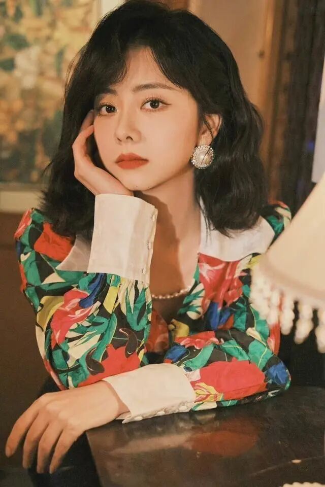 除了把握服装的设计以外,我们还可以选卷发造型,营造出满满的复古情调。像谭松韵示范的微卷中长发,就带着复古又俏丽的气质。黑发与红唇的组合,还能衬得人气色更加红润。