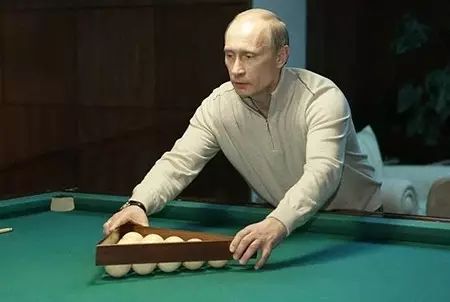 俄罗斯总统普京在打俄式台球(俄式台球,又称俄式撞球,是一种落袋式台球,使用红色母球及15颗白色号码球。球较大,袋口较小,是所有台球运动家族中,入球难度最高的)。