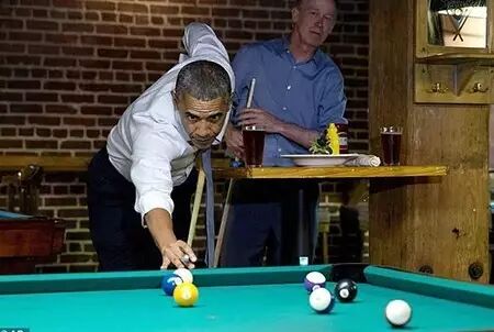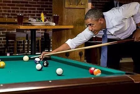 前任美国总统奥巴马,看来台球还有一定基础。