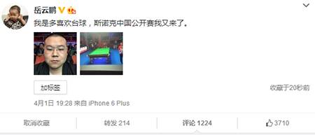 身为铁杆球迷的他,更现身斯诺克中国公开赛现场看比赛。