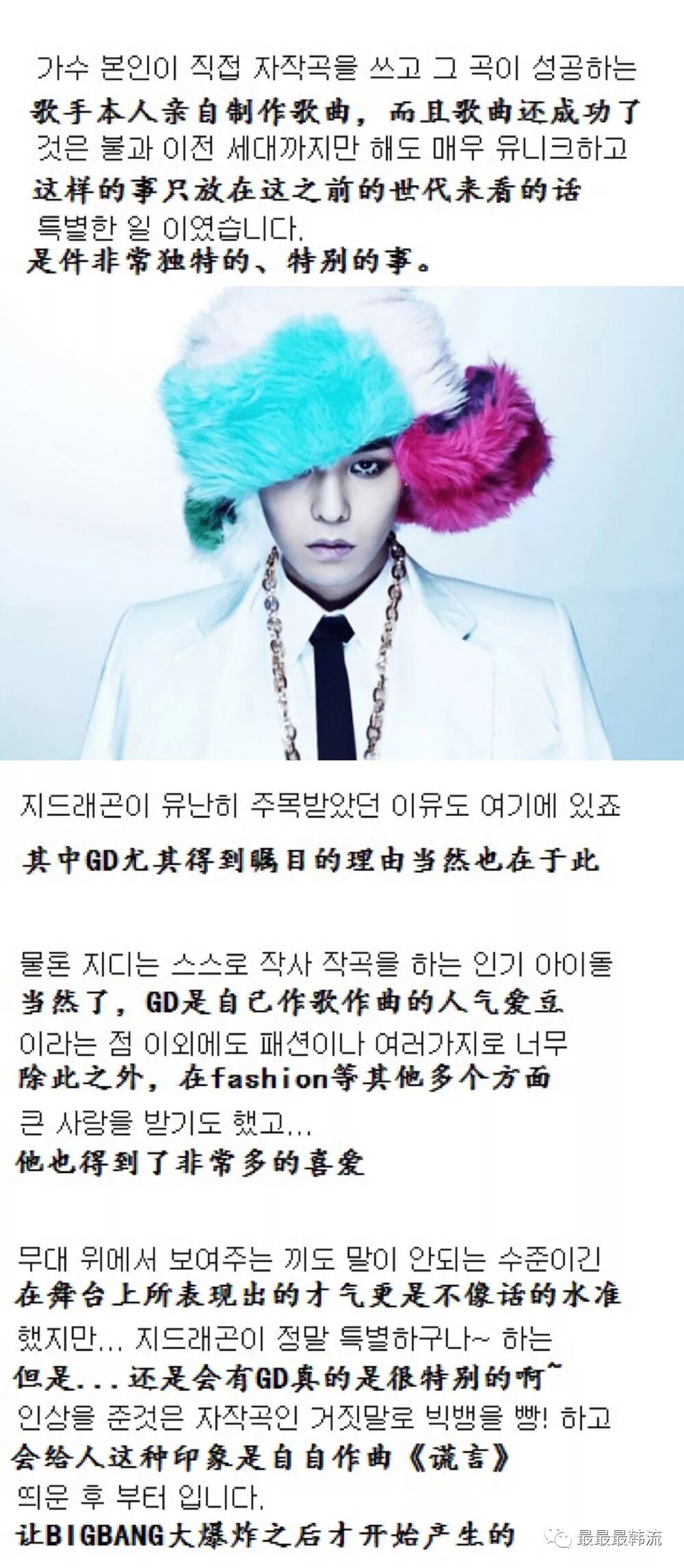 还以YG的GD为例,认为拥有自作曲才能的GD让BIGBAND的成名变得更加迅速和剧烈