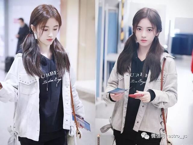 而鞠婧祎的长发造型其实也是非常撩人的,只不过整体的风格和这双马尾造型差别比较大罢了。喏,在不久前她在机场的一身私服就选择了披肩长发,搭配上可爱的毛绒坎肩,可爱指数倒是一点不减,不过两套造型却差距挺大的。