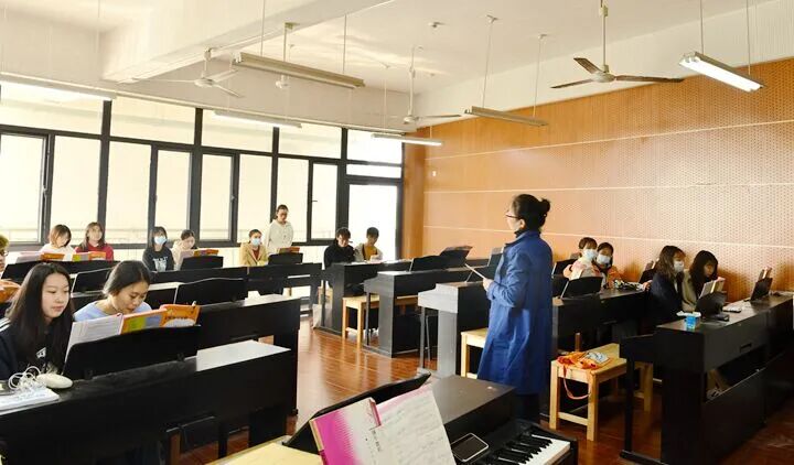 “在学生们第一次进入我的课堂时,我就要求他们打拍子唱谱,边弹边唱谱,因为歌唱需要呼吸,不论你音准与否,到一定地长度,必须呼吸,通过这样的方式慢慢训练学生们歌唱和弹奏的呼吸同步,进一步更好地稳定节奏,表现乐句。”