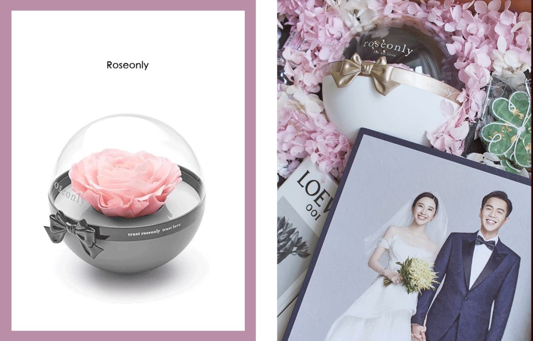 能够旋转的粉色永生花玫瑰花球,有着“永恒心动的恋人”的美好寓意。