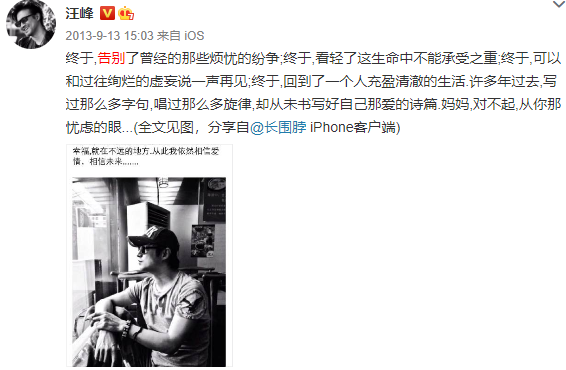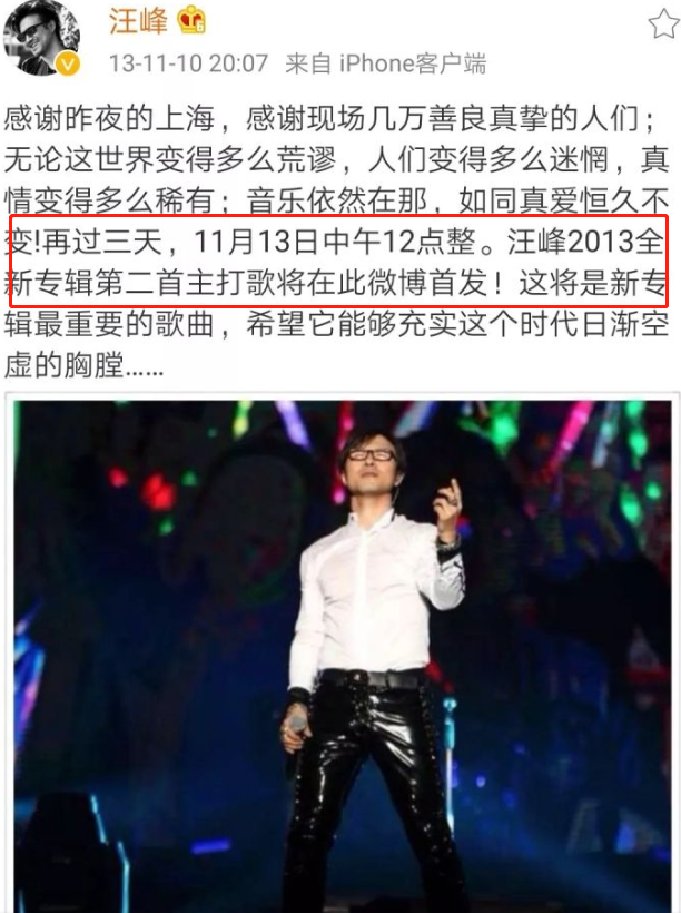 上个月月初,趁着小儿子生日,汪峰兴致盎然地预告自己月底将要发新歌。