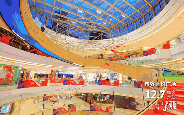 走进句容吾悦广场,三层螺旋式扶梯、360度旋转的LED天幕、妙趣横生的儿童公共滑梯、艺术风景般的弧形天梯、清新舒适的购物环境为顾客带来愉悦的购物氛围。