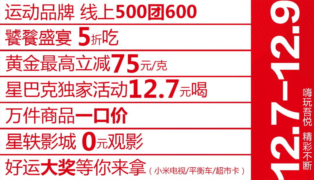以让顾客的幸福变得简单为立足点,句容吾悦广场的开业活动更注重简单便民。开业期间,餐饮服饰、影城、电器、黄金珠宝等各大业态全场大优惠,0元看电影、5折吃大餐、黄金每克立减75元等促销活动,让顾客充分享受质优价美的购物体验。