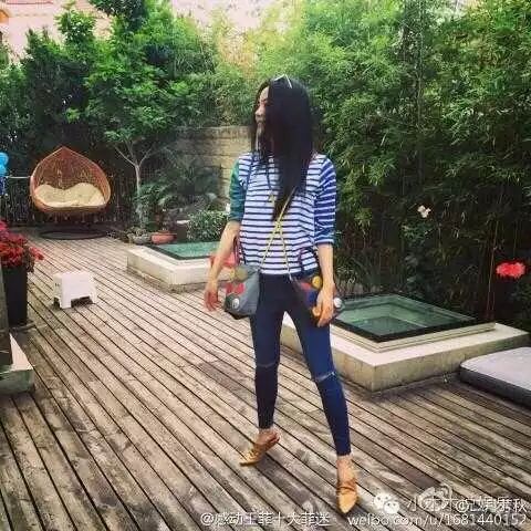 话说王菲有夺爱蓝白条纹呀,二十几岁时候就开始这样穿。