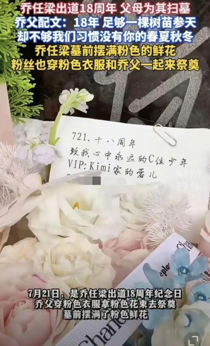 今年 7 月是他出道 18 年,那时候他爸妈带着几个粉丝去祭拜了。这九年啊,他爸妈老得特别明显,他爸头发都白透了,看着就心疼,这九年他俩得多难熬啊。虽说这么多年过去了,好多事都变了,但他爸妈和那些真喜欢他的粉丝,对他的念想一直没断。