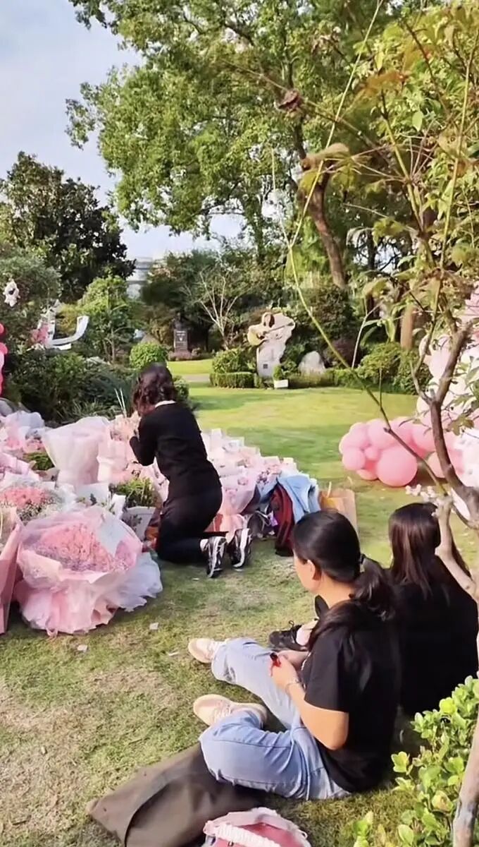 白天还好,天儿好,灯光也亮,他坟前摆着粉粉的东西和花,看着还没那么凄凉。特别是有个女粉丝,跪在那儿,看着特别诚恳,让人心里一酸。可一到黄昏,灯光暗下来,那墓地就显得特别荒凉冷清。尤其看墓碑上的照片,要么是转身的,要么就露半张脸,看着还挺吓人的。