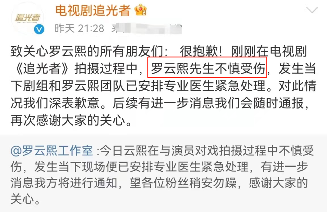 但男主饰演者罗云熙意外被搭戏演员打伤,