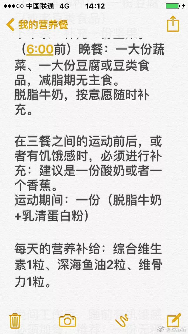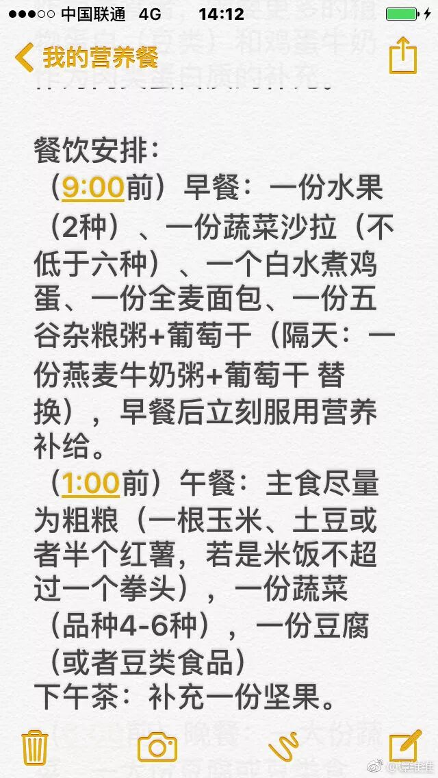 第二阶段减肥方法:完成突击训练之后,坚持每天只吃一顿(采访提过这一顿想吃啥吃啥要吃饱),这个时期运动量没有那么大了,尽量少吃主食,基本维持了之前的减肥成果。