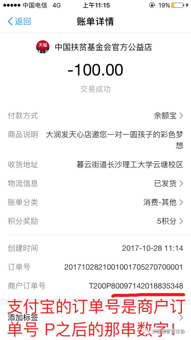 订单编号的填写:扫码捐赠的话两个地方都可以查询哦