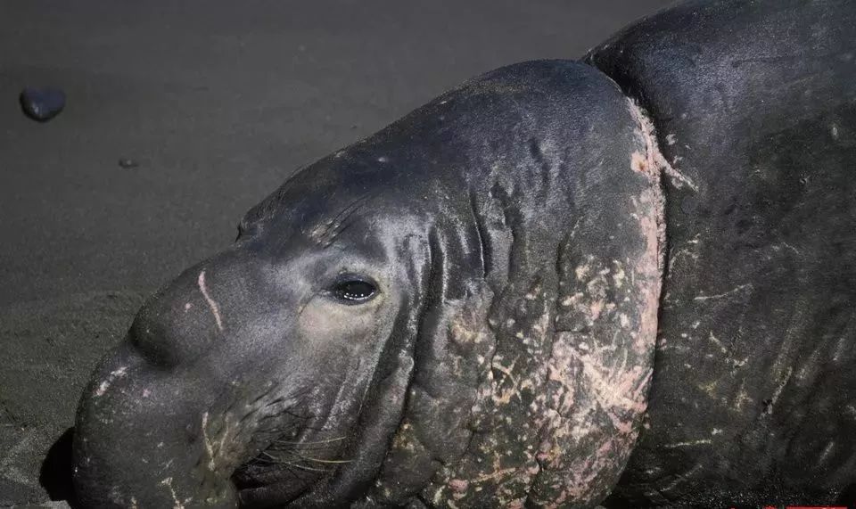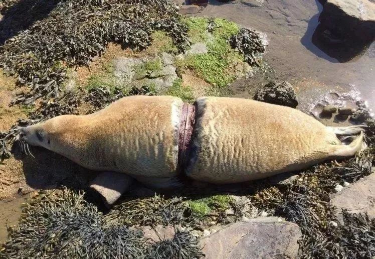 被尼龙绳勒断身体的海豹