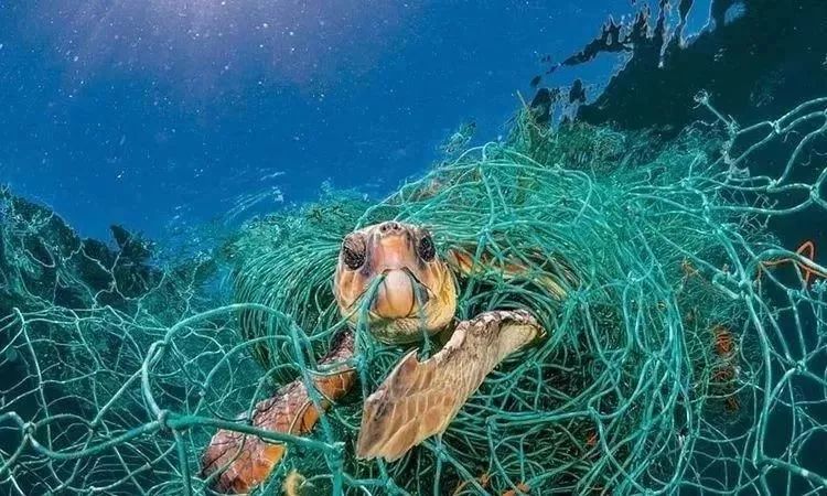 还有被渔网困死的海龟