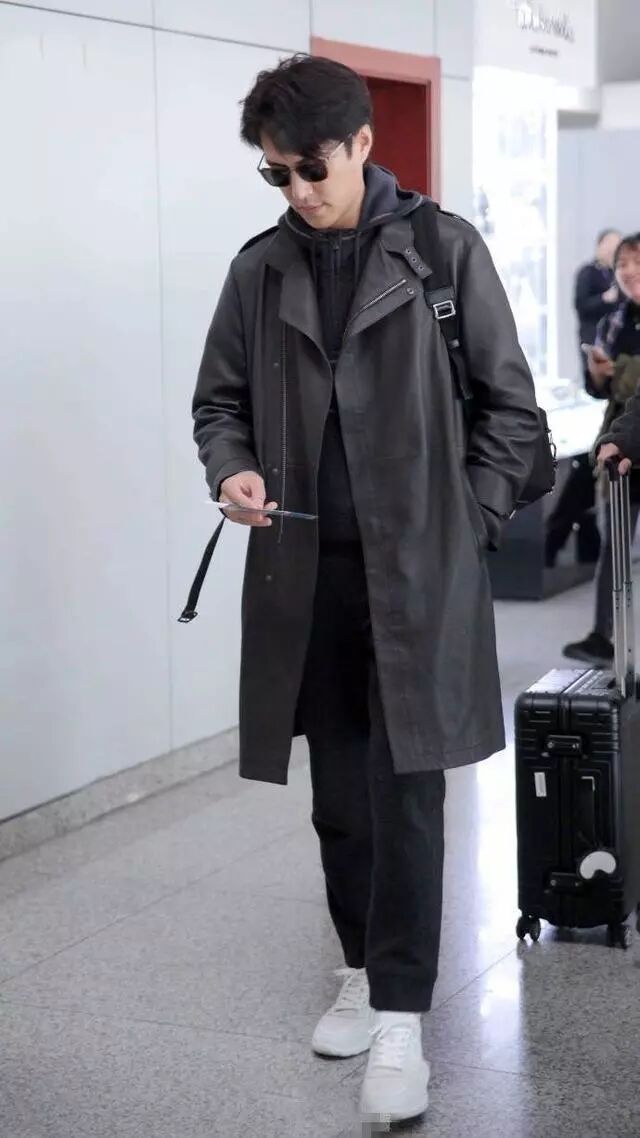 而靳东虽然比魏晨大十岁,气质却是比魏晨要高一大截。一身黑色衣服显得十分清爽干净,及膝盖长的风衣外套,非常霸气,黑色哈伦裤搭配干净的白色运动鞋显得十分的精神。