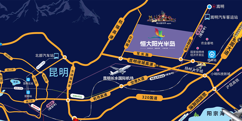 昆明恒大阳光半岛作为恒大地产云南献礼巨作,依托昆明空港经济区,匠心品质打造约6千亩世界级文旅产业集群,总体量约逾百万方。囊括美食街、商业广场、影城、高级住宅等丰富业态,是集休闲、娱乐、餐饮、民族文化体验、商业、旅居于一体的超大型旅游居住综合体。