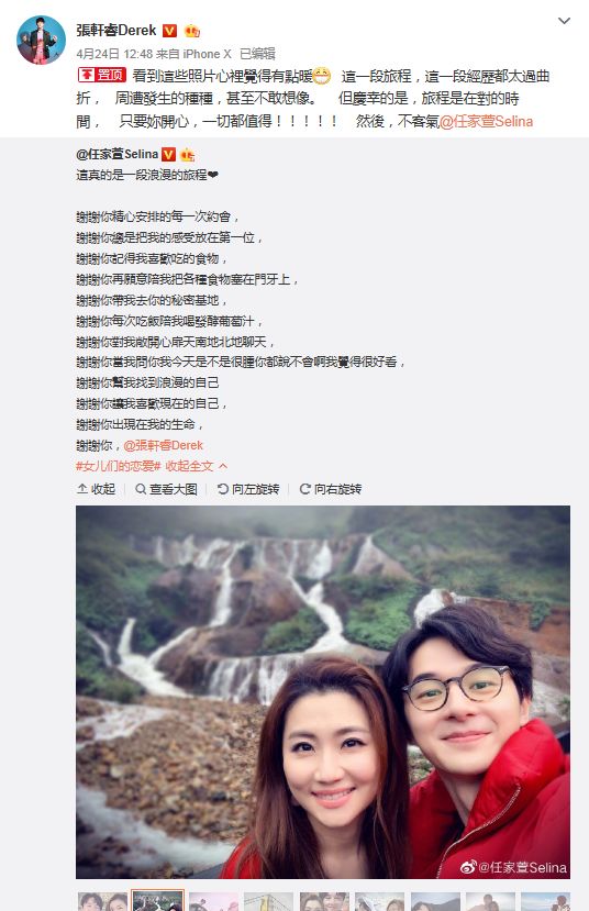 任家萱还发了长长的微博表白说:“谢谢你出现在我的生命。”