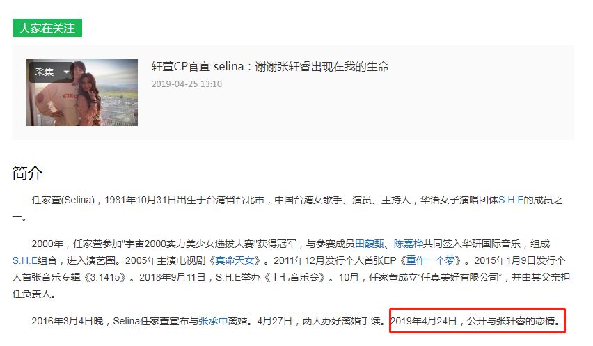 任家萱的360百科简介里都第一时间同步更新了公布恋情的事 ↓↓
