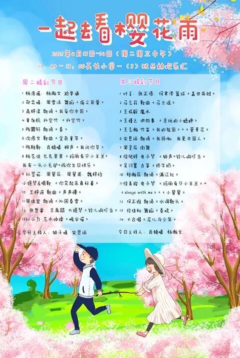 4月13日、14日的中午,天长小学一(3)班丛林展示活动以“一起去看樱花雨”为主题,在大家的期待中开幕啦!