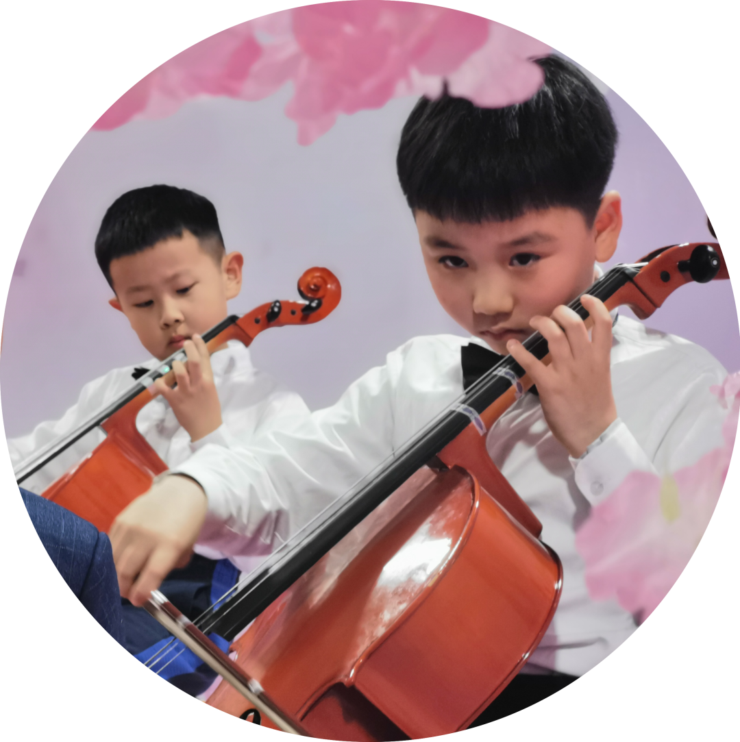 我和王禹喆都非常喜欢大提琴,现在一起在学校的民乐团学习大提琴演奏。这首圣诞歌曲是我们俩第一次合作的歌曲。我们还成立了一个大提琴组合,名字就叫“喆哲乐队”。