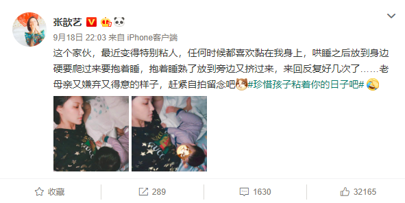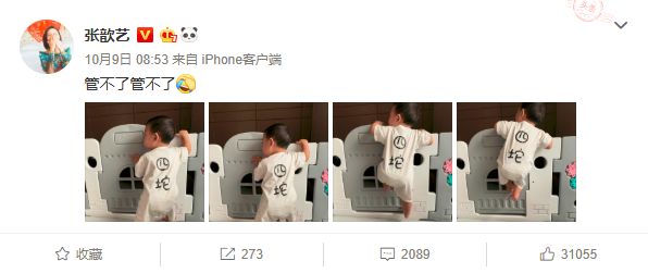 除了晒老公,张歆艺还光荣成为“晒娃狂魔”的一员。