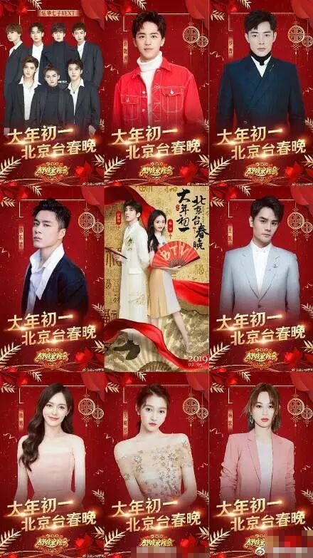 北京卫视春晚:杨幂、蔡徐坤、王凯、罗晋 、唐嫣、韩东君、杨紫 、关晓彤 、许魏洲、乐华七子(朱正廷、范丞丞、黄明昊、毕雯珺、丁泽仁、李权哲、黄新淳)等