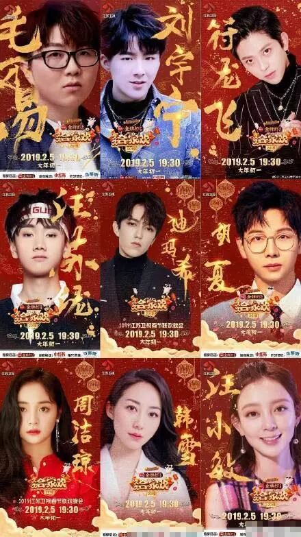 江苏卫视春晚:毛不易、刘宇宁、符龙飞、汪苏泷、迪玛希、胡夏、周洁琼、韩雪、汪小敏等