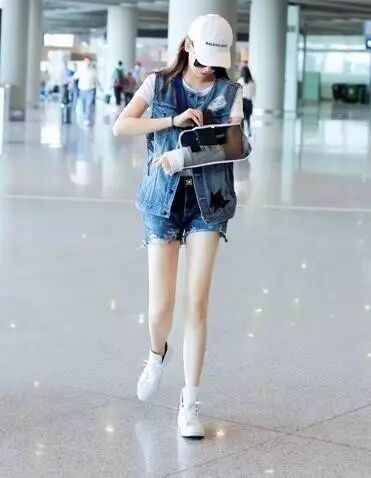 不过,说到戚薇不仅打游戏拼,工作也是非常拼的。就说她这手骨折吧,就是因为工作的原因。不过即使受伤也没有影响到她的颜值,在机场出行中,一身粉色衬衣搭配短裤,简直秒杀全场。