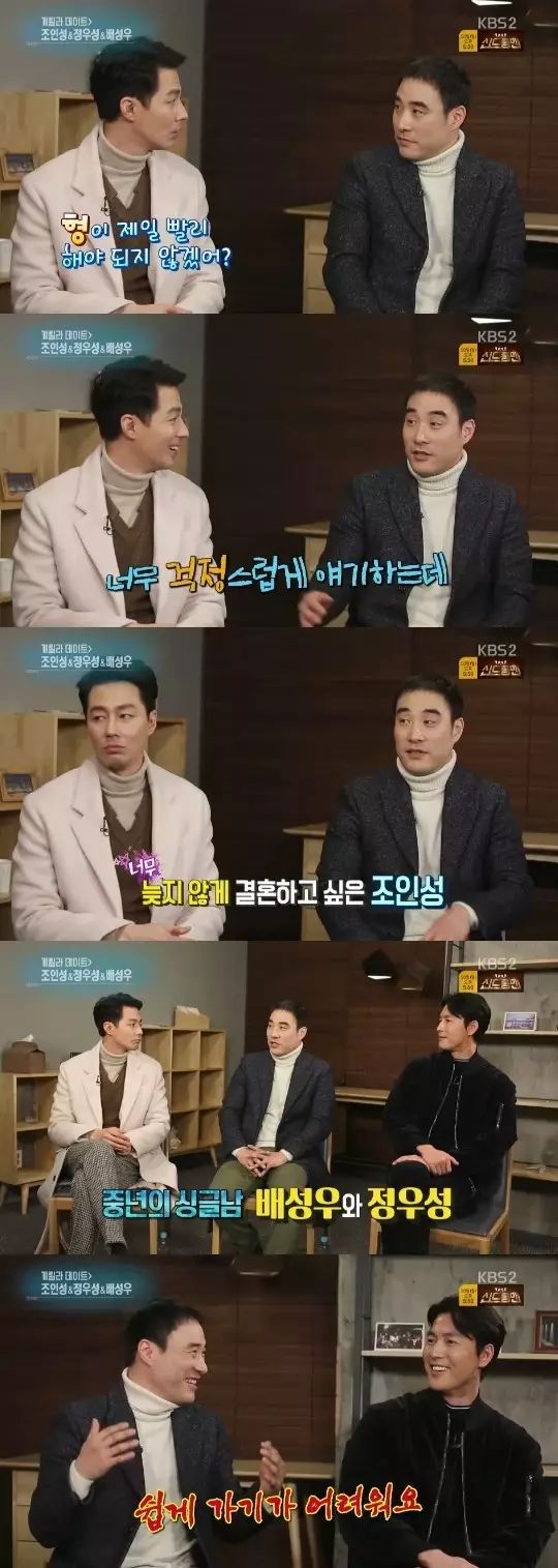 随后在访谈中,被问到三人中谁会最早结婚,裴承佑回答是赵寅成,因为他平常就老是在说要早点结婚。旁边的赵寅成也再次强调,真的希望早点结婚~