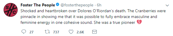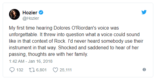 因此有国内歌迷在怀念Dolores的朋友圈里面说