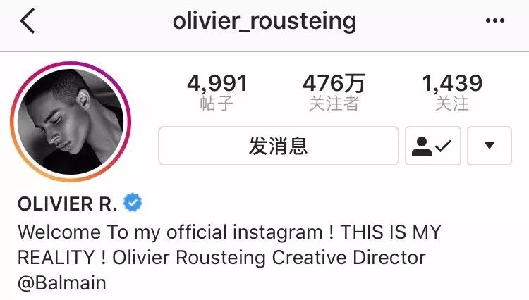 Olivier Rousteing坐拥476万粉丝,是设计师里最高的