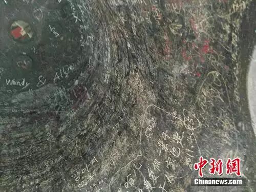 但是!这么美的芙蓉隧道却被游客涂成“牛皮癣”,据@梨视频,芙蓉隧道的墙面上被密密麻麻地写满了“到此一游”的标记,还有在墙面上写有“我爱你”、“考上厦大”等告白许愿语。