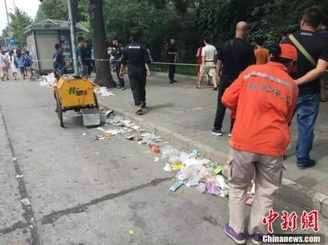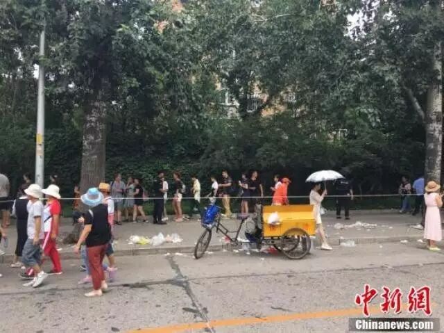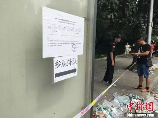 去年暑假期间,来自全国各地的游客排队进入清华北大校园。但在排队现场,垃圾遍地。