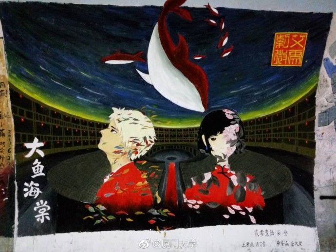 先给大家看一组厦门大学官微曾分享的图,图上是隧道内美轮美奂绘画,为厦大学子一笔一笔描绘而成: