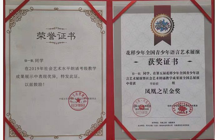 第五届花样少年全国语言大赛国赛“金奖”