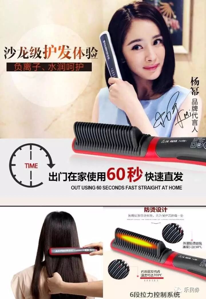 杨幂代言 陶瓷直发/卷发两用夹板梳子