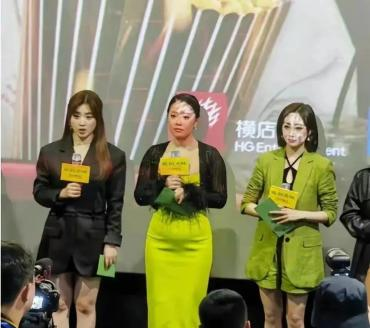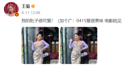 在新电影《爱很美味》上映前夕,宣传现场的她穿着紧身裙站在台上,小肚子突出得很明显。