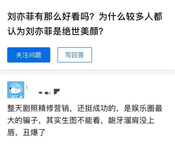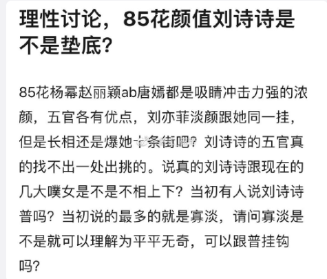刘诗诗“后脑勺扁,五官寡淡”,算不上大美女;