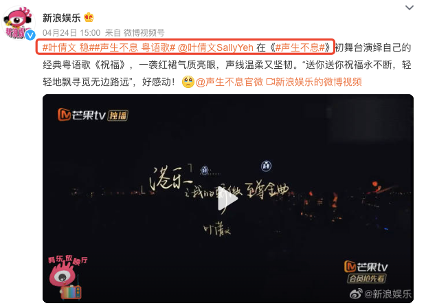 不过不得不说,老歌真好听啊,特别是看到叶倩文在台上唱歌的样子,真是万千记忆涌上心头。