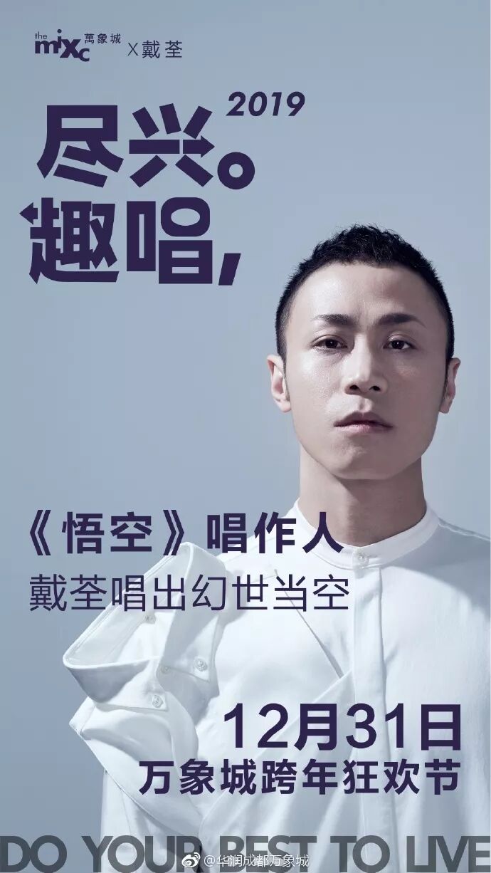 12月31号,戴荃,成都万象城,唱出幻世当空,陪你们一起尽兴跨年!!!