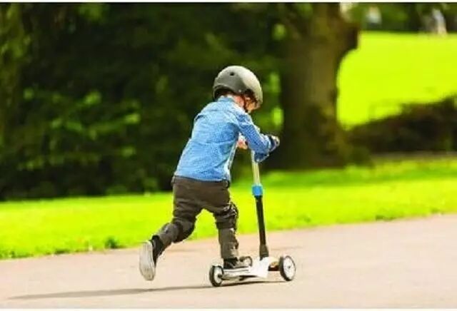 温馨小提示:在孩子初次玩耍时,最好有家人在旁边看护,熟练以后再自己滑行,那种没有扶把的滑板车至少要8岁以后才能玩。