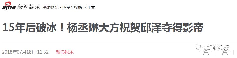 两人就这么隔空僵了很多年,前段时间才称得上是冰释前嫌。