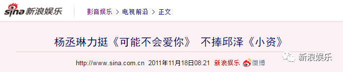继而就有了这么一条新闻出现:杨丞琳不捧邱泽《小资》。