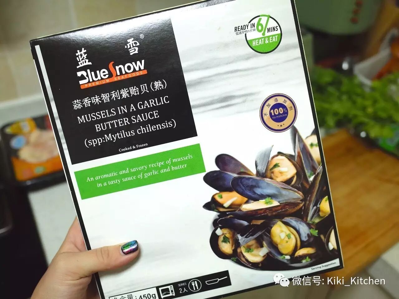 1/主页君用的是蒜香味的盒装青口贝,含450g正好是1-2人份