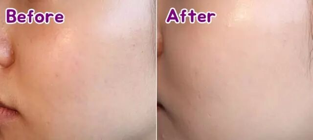扑在脸上!瞬间就能感受到清凉的感觉,据说这是因为其中含有的矿物质淤泥水提供的清凉效果,能让肌肤降低2℃左右呢!看看前后的对比图吧~是不是之前皮肤上的小色斑和红色的痘印之类的瑕疵,在涂抹后几乎消失不见?整个肌肤呈现出水润光彩的效果,就是面对韩国欧尼们也不会输阵啦!