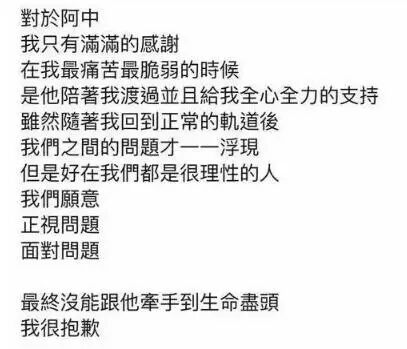即便外界对阿中流言四起,她依旧在感恩。之前的离婚声明里就揽下所有问题。