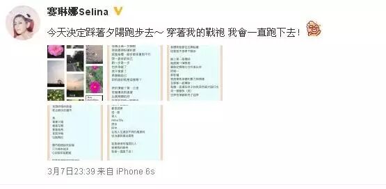 Selina喜欢跑步。记得去年看她生平第一次跑半马的新闻,大方露出自己身上的疤痕,高举双手冲向终点,见到终点的阿中,一下子瘫到他怀里。感动了所有人。